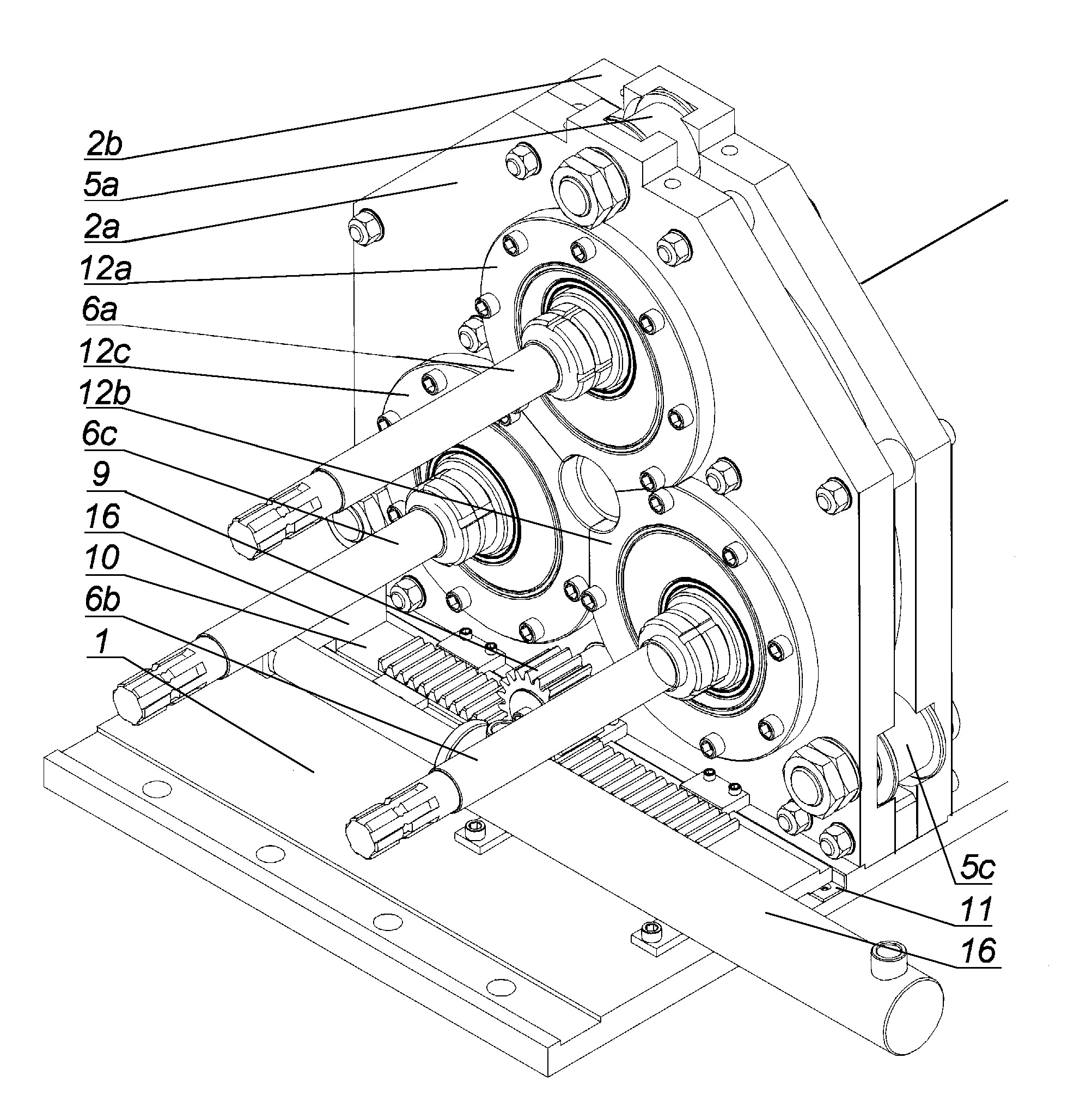 Urządzenie do przepychania obrotowego z regulowanym rozstawem osi