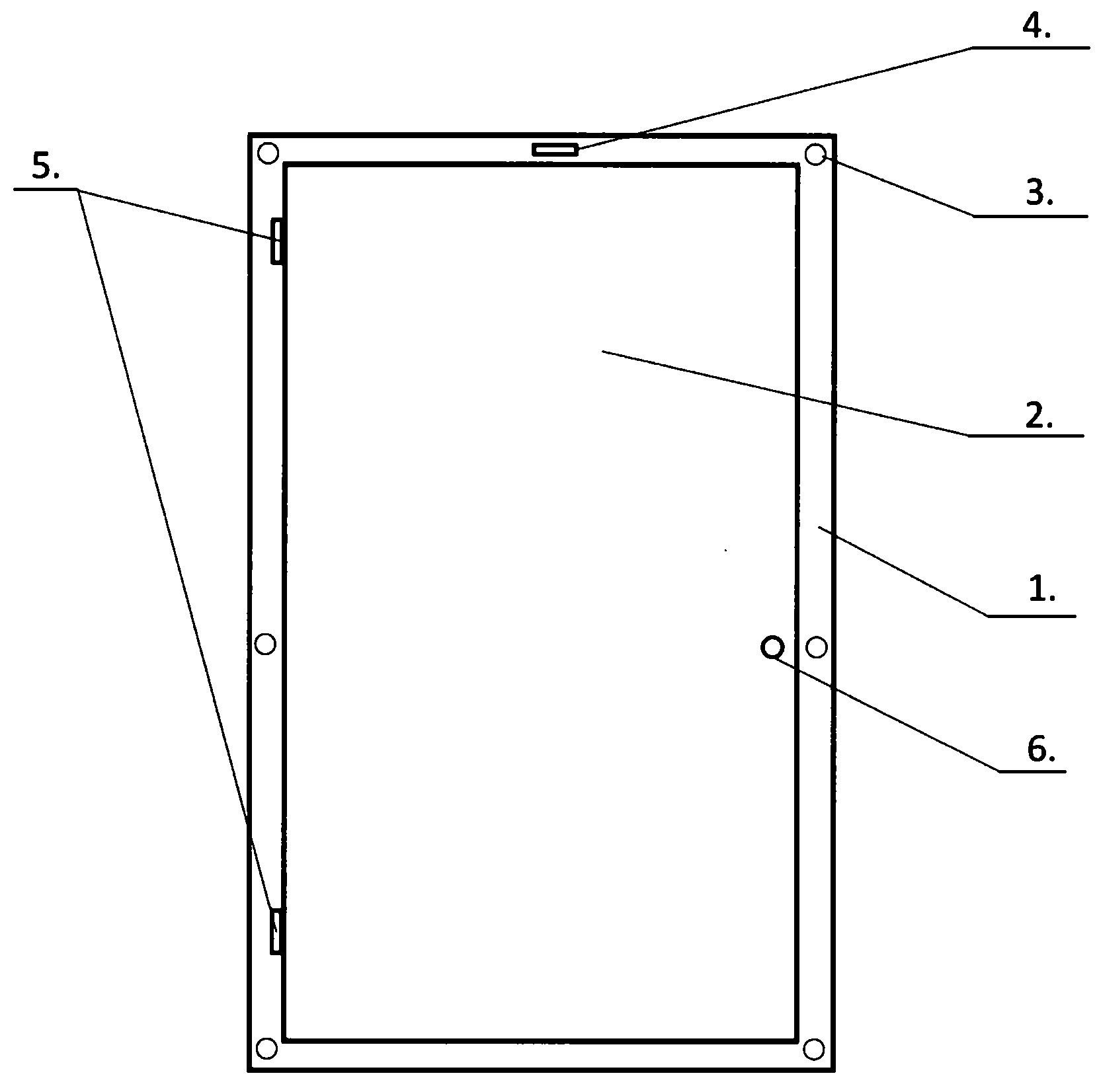 Przedmiotem zgłoszenia jest ramka reklamowa posiadająca prostokątną obudowę (1), która charakteryzuje się tym, że wewnątrz prostokątnej obudowy (1) zamocowana jest na zawiasach (5) szyba (2) ze szkła akrylowego posiadająca po przeciwnej stronie zawiasów (5) zamknięcie na zamek (6), która zamocowana jest w prostokątnej obudowie (1) za pomocą zawiasów (5) oraz po przeciwnej stronie zawiasów (5) w części środkowej przy obudowie (1) posiada zamek (6) umieszczone w szybie (2) ze szkła akrylowego przy krawędzi w części środkowej, zaś w narożach i w częściach środkowych dłuższych boków prostokątnej obudowy (1) zamocowane są głośniki (3), a w środkowej części górnej krótszego boku prostokątnej obudowy (1) zamocowana jest fotokomórka (4).